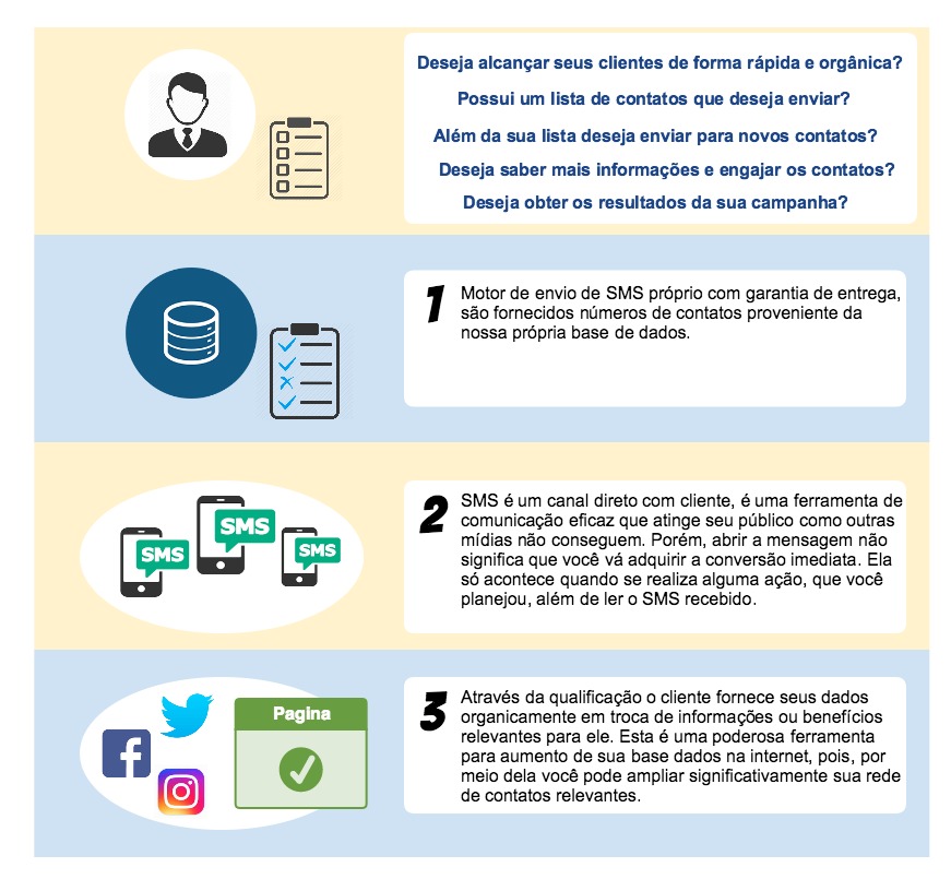 Camapanha de envio de SMS massivo é utilizada por diversas empresas do mercado a bastante tempo, porém de forma passiva. Ao contrário, a nossa proposta é fazer uma campanha ativa, utilizando de ferramentas e métodos para alcançar o maior número de clientes orgânicos propondo interatividade. O envio das mensagens será garantido além de monitorar e colher informações cruciais para o seu negócio e entregando resultados concretos da campanha.